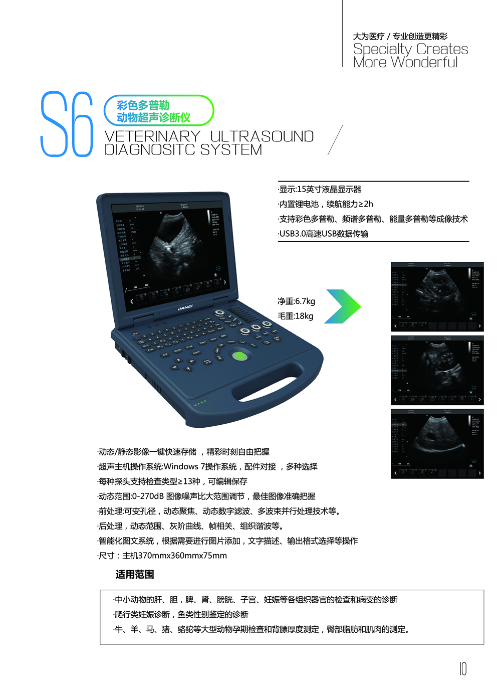 S6彩色多普勒兽用B超机-动物超声诊断仪资料